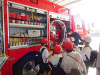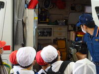 見学の際には、佐伊津保育所の金子園長先生が、地層について詳しく説明してくださいました。れきや砂などの様子から、大昔、この辺りも海の底だったということ、粘土質の層があるから、佐伊津は地下水が豊かであるということなどを学んだ子どもたちでした。はるか昔の地球の歴史、そして、佐伊津の歴史に思いをはせるひとときとなりました。