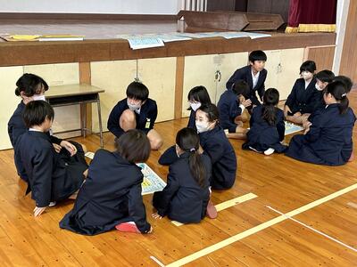 授業参観で行う予定であった各学年の人権学習について発表し合いました。そのあと縦割り班活動で交流を行いました。