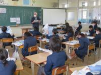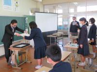 また、食品ロスの話もされました。現在、日本では、年間612万tの食品ロスがあるそうです。これは、一日当たり一人おにぎり1個分を無駄にしているということになるのだとか。この話を聞いて、子どもたちは、「給食をなるべく残さないようにしなきゃ。」と話していました。人や環境のことを考えて過ごすことの大切さを再確認する機会となったようです。