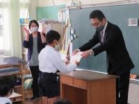今日は、漢字・計算大会W満点(どちらも満点)賞、文集「あまくさ」、県文集「ゆめ」、科学・発明展の表彰を行いました。コロナ禍ですので、校長先生が各教室をまわられ、表彰されました。