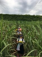 次に、サトウキビ畑を見学させていただきました。畑を管理されている方に話を聞いたり、青々と茂ったサトウキビ畑に入らせていただいたりすることができました。