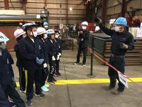 全体への説明があった後、工場見学コースとクレーン操作体験コースの2班に分かれて、見学がスタートしました。