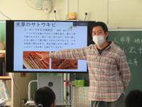 天草市地域おこし隊の冨山さんから、佐伊津町のサトウキビ栽培から黒砂糖の製造についてお話を伺いました。