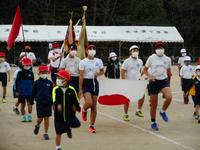 児童テントからの入場です。当日朝は気温が下がっていたため、防寒着を着用しました。