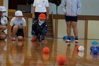 ちなみに、「ペタンク」は、木製の目標球に、金属製のボールを投げ合い、より近づけることによって得点を競うゲームです。今回は子供たちバージョンです。