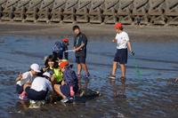 一日頑張った子供たちにボランティア活動の最後に、磯遊びのご褒美です。小魚を捕ったり、石投げをしたり、とっても楽しそうでした。