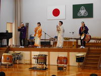 尺八・箏・太鼓・三味線のグループに分かれ、少しだけでしたが体験をしました。多くの児童が初めて手にする楽器でしたが、プロの皆さんのご指導で、最後は「ソーラン節」を演奏し、一緒に踊りました。(ここに掲載した写真をご覧いただき、その雰囲気をお感じください)