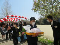 卒業生は、義務教育6年間の最後の授業としての卒業証書授与式を立派な態度で締めくくってくれました。堂々とした入場、卒業証書授与、記念品授与、記念品贈呈と、厳かに粛々と進められていきました。そして、「別れの言葉」では、在校生からのお祝いメッセージをじっと見入っていた卒業生。自分たちのメッセージを述べる場面では、思いを言葉にしっかりとのせて、体育館に響かせてくれました。成長した姿、感謝の気持ちを全身で表現してくれました。