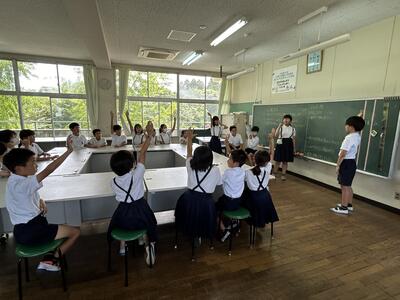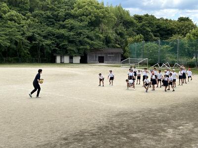 今日は教育実習札本先生の実習最終日。四年生はお別れ会。札本先生は、ドッジボールも強い!楽しそうでした。