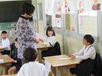 振り返りの視点を広げたい担任の先生は、実演をして子供たちのよかったところを示しながら、子供たちにもっと気づいてほしい点を伝えておられました。