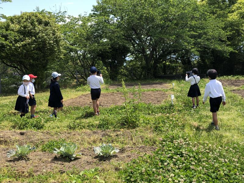 生き物をつかまえたり。また、班ごとに仲良くタブレットを使って、撮影をし、