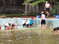 汚れたプールの水をバケツですくあげる作業はとても大変でしたが、いっしょけんめいがんばりました。