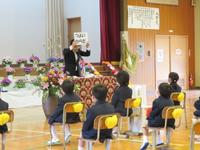 佐伊津小学校の今年の目標「さわやかあいさつ・いっしょけんめい・つよいからだ」についてお話ががありました。