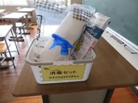 各教室にある消毒セットです。下校後、子供たちが触れた場所を毎日拭きます。