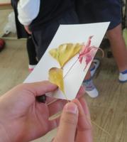 2年生に喜んでもらおうという相手意識を持って、木の実や木の葉などを使って、遊ぶものや飾るものなどを作った1年生。