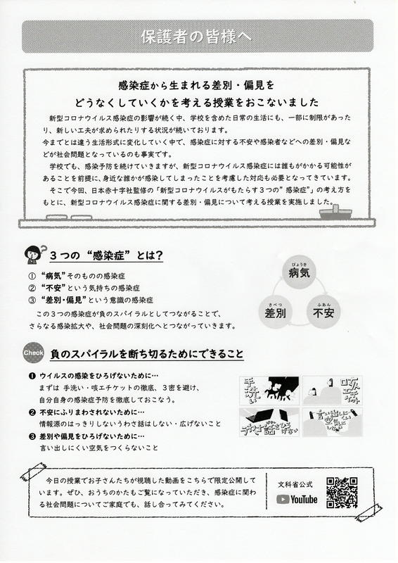 同プロジェクトから保護者の皆様へのおたよりもありますので、掲載します。よかったらご一読ください。