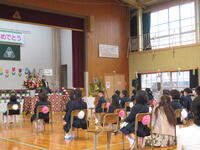 新型コロナウイルス感染症拡大防止のため、3年続けて入学児童、保護者、教職員だけの式となりましたが、心温まるお祝いの式となりました。