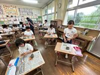 1学期の漢字・計算大会の満点賞並びにダブル満点賞の紹介と表彰を行いました。全員がしっかり取り組み、一人一人が伸びる結果であったと思います。一生懸命に取り組んできた姿を想像しながらみんなを眺めていたところです。みんな、頑張りました!
