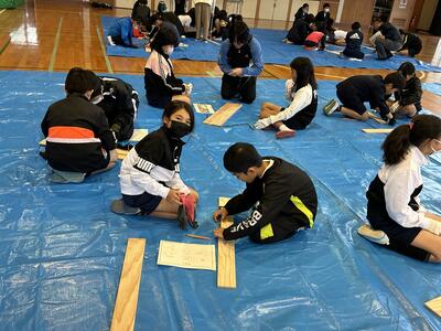 県の方々が地域の木材のよさに触れさせることを目的に、木工教室を実施してくださいました。本棚が完成しそうです!