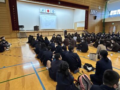 本渡中学校生徒会のみなさんのわかりやすく、また大変立派な態度の説明で、中学生に憧れてしまいました。六年生も立派な中学生になることでしょう!楽しみになりました。