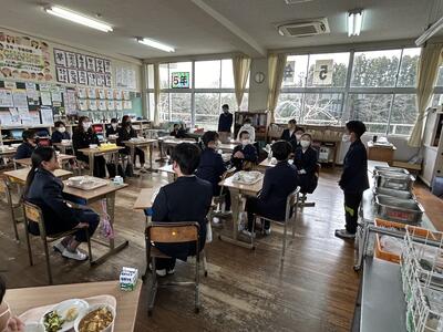 今日は給食記念週間の集会でしたが、寒さのためにオンラインに変更実施しました。泉 先生ありがとうございました。