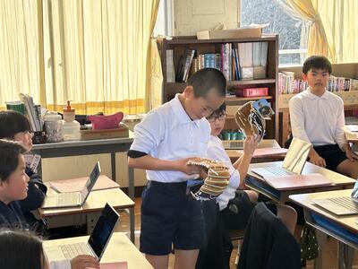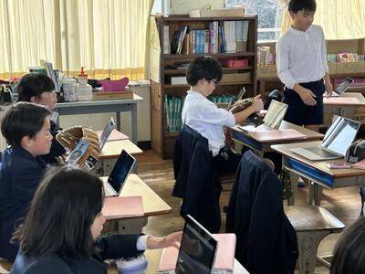 今日は2年生の学級では1時間目からオンラインで授業を実施されていました。オンラインで参加していた2年生は授業で発表もして学級にいるみんなから「同じでーす!」と反応もされていました。オンライン授業が進み保護者の方々に感謝申し上げます。