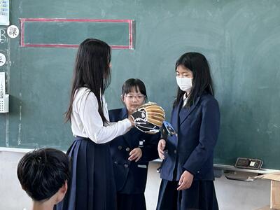 とうとう佐伊津小学校にも待ちに待った大谷選手のグローブが届きました。何度も何度も尋ねにきた児童が多くいましたので、わたしもとてもうれしかったです。