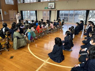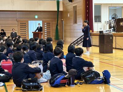 本渡中学校生徒会のみなさんのわかりやすく、また大変立派な態度の説明で、中学生に憧れてしまいました。六年生も立派な中学生になることでしょう!楽しみになりました。