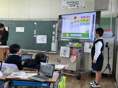 今日は1年生の研究授業を行いました。1年生の落ち着いた学習の様子や学習への意欲、発表時の話し方、どれも素晴らしかったです。楽しみながらしっかり考えタブレット操作を行い力をつける45分間になっていました。素晴らしい1年生の姿でした。