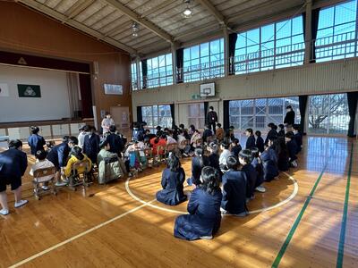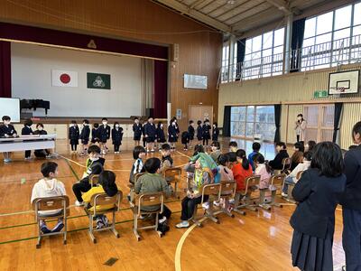 今日は新1年生26人を迎え体験入学を行いました。保護者のみなさまは学校からの説明、新入生は1年生とのふれあいの会を行いました。歌や発表、学校探検を行いました。入学式を楽しみにしております。ご来校いただきありがとうございました。