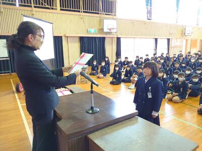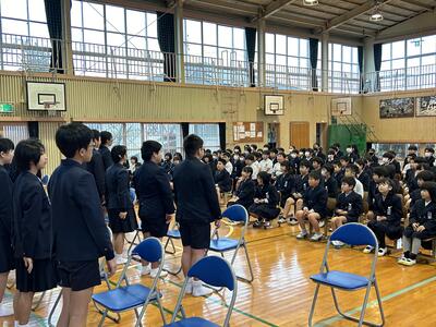 今日は退任式でした。今年は、4人の先生方がご異動になります。別れは寂しくて辛いけれど、つぎにお会いできる日までみんなでさらに頑張って成長した姿をお見せしましょう!先生方、ありがとうございました。