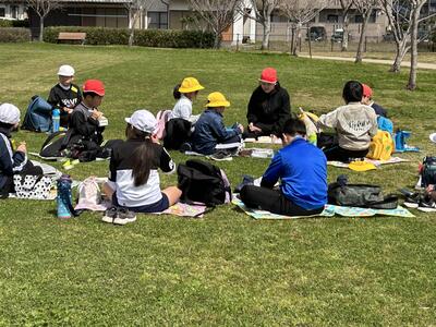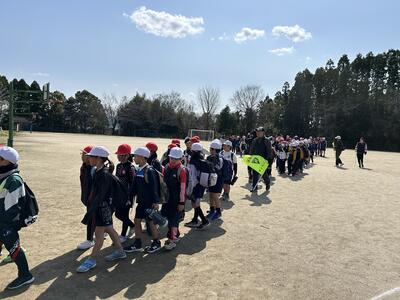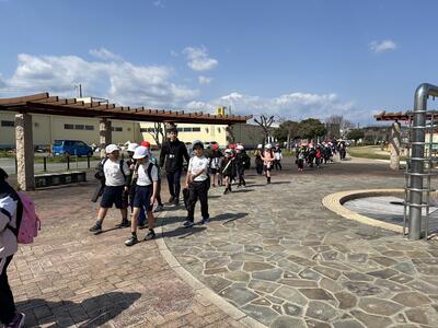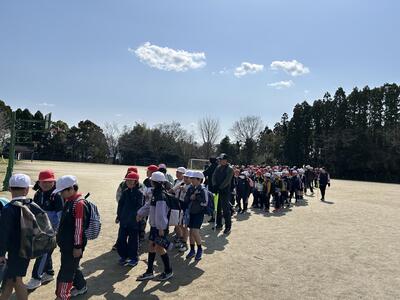 今日は送別遠足でした。まずは校内で六年生とのお別れ会。担当したのは五年生!六年生に関するクイズが楽しかったです。ゲームや長縄も縦割り班で行い、六年生とたくさん触れ合うことができました。五年生ありがとう!六年生に全校児童そして私たちからのありがとうも伝わったかな、楽しい遠足でした。