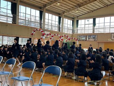 19日は最後の授業日ということもあり、どの学級でも、1年間のがんばりを讃え、お楽しみ会を企画していました。スポーツ大会、レクレーション、たくさんの楽しい企画を行っていました。