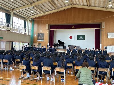 今日は2時間目と3時間目、卒業式の予行を行いました。数少ないこれまでの練習でしたが、在校生はしっかりした態度で参加しました。これまで1番練習を積み重ねてきた6年生も歌や呼びかけの表現が変化してきました。さすがです。
