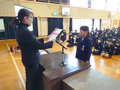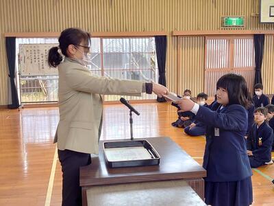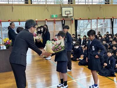 本日は令和五年度の修了式。朝から子供たちは張り切って元気いっぱい登校してきました。