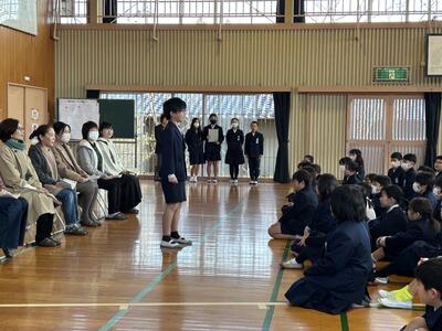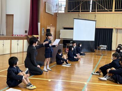 毎週金曜日には、本校では朝の活動に読み聞かせを実施しています。15日金曜日は今年度の最後の読み聞かせということで、お礼の会を行いました。特に6年生は6年間お世話になりました。みんなでお礼のメッセージやごあいさつを行いました。たまて箱のみなさまからは会の由来や読み聞かせ20年継続についてお話がありました。たまて箱という名前は浦島太郎のたまて箱にまつわること、たまて箱には宝物がたくさん、わくわくがたくさん、そのような読み聞かせにしたいとこの名前をつけられたそうです。今年もありがとうございました。また来年も楽しみにしています!