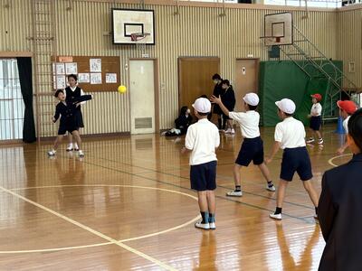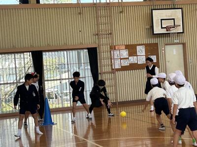 先週から五年生の企画のもと、各学年と六年生とのドッジボール大会を行っています。今日は二年生との対戦。六年生は左手で投げるルール。二年生が勝ちました。六年生との思い出がまた増えました!