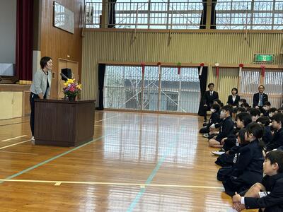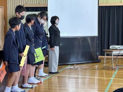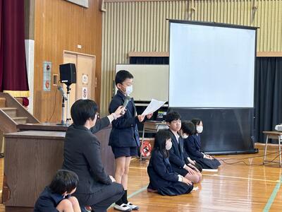 続いて学年代表児童の作文発表。五年生は発表原稿なしでの話、素晴らしかったです。みんなが今年、たくさんのことを頑張ってきたことがわかりました。ありがとうございました。