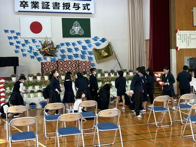 修了式のあとは午後から卒業式準備を三年生以上の皆さんが行ってくれました。ありがとうございます!素晴らしい舞台が整いました。六年生が喜んでくれることでしょう!