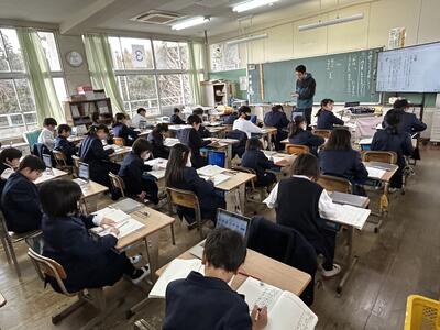 今日は午後から六年生は本渡中体験入学に行きました。初めての本渡中学校はどのように映ったでしょう。生徒会長のお話は素晴らしかったですね。みなさんもあのように立派になっていくのかと思うと楽しみになりました。校舎見学。理科室は3つありました。素晴らしい校舎、素晴らしい先生方、素晴らしい先輩方、素晴らしい伝統、本渡中学校入学を楽しみに入学してください!