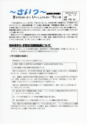 2021年2月の記事一覧 2021年2月 全ての記事 カテゴリ アーカイブ 2025年12月 (0) 2025年11月 (0) 2025年10月 (0) 2025年9月 (0) 2025年8月 (0) 2025年7月 (0) 2025年6月 (0) 2025年5月 (0) 2025年4月 (0) 2025年3月 (0) 2025年2月 (0) 2025年1月 (1) 2024年12月 (1) 2024年11月 (1) 2024年10月 (2) 2024年9月 (0) 2024年8月 (0) 2024年7月 (1) 2024年6月 (2) 2024年5月 (0) 2024年4月 (0) 2024年3月 (1) 2024年2月 (2) 2024年1月 (1) 2023年12月 (0) 2023年11月 (0) 2023年10月 (0) 2023年9月 (1) 2023年8月 (0) 2023年7月 (0) 2023年6月 (1) 2023年5月 (1) 2023年4月 (1) 2023年3月 (1) 2023年2月 (1) 2023年1月 (1) 2022年12月 (1) 2022年11月 (1) 2022年10月 (0) 2022年9月 (0) 2022年8月 (1) 2022年7月 (1) 2022年6月 (1) 2022年5月 (1) 2022年4月 (2) 2022年3月 (0) 2022年2月 (1) 2022年1月 (1) 2021年12月 (1) 2021年11月 (0) 2021年10月 (1) 2021年9月 (0) 2021年8月 (0) 2021年7月 (1) 2021年6月 (1) 2021年5月 (1) 2021年4月 (1) 2021年3月 (2) 2021年2月 (2) 2021年1月 (2) 2020年12月 (2) 2020年11月 (2) 2020年10月 (2) 2020年9月 (2) 2020年8月 (1) 2020年7月 (3) 2020年6月 (5) 10件 1件 5件 10件 20件 50件 100件 学校だよりNo.19 投稿日時 : 2021/02/22 学校サイト管理者 本日学校だよりを配付しました。 今回は2ページあります。 ご一読ください。 詳しくはこちら→No.19(2月22日).pdf 学校だよりNo.18 投稿日時 : 2021/02/02 学校サイト管理者 本日学校だよりを配付しました。 今回は2ページあります。 ご一読ください。 詳しくはこちら→No.18(2月2日).pdf