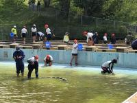 プールの壁や底を磨く作業もですが、バケツで水をくみ上げる作業が大変でした。
