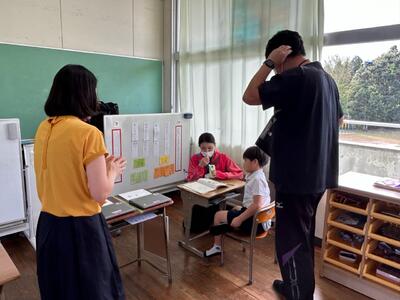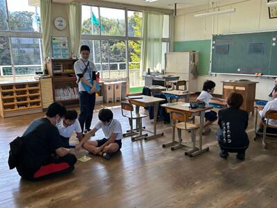 今日は3時間目と4時間目に五年生の環境学習にゲストティーチャーとして天草海部の方がいらっしゃいました。