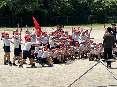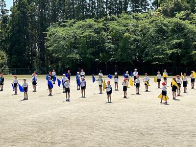 今日も美しいフラッグを用いて、高学年児童が頑張っていました。