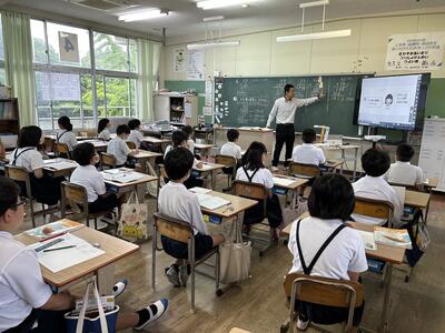 6日(火)、天草市役所課税課の井上さんに来ていただき、税金について教えていただきました。子ども達は税金がなくなったらどのような世の中になるかの映像を見て、税金の大切さを感じていました。その他に身近なところに税金が使われている新しい発見がありました。