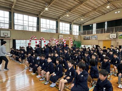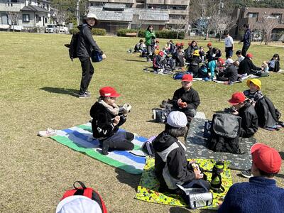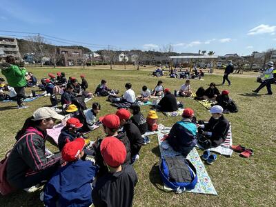 今日は素晴らしい天気のもと、送別遠足を実施することができました。運転場で五年生が企画運営してくれたお別れ会を実施、そのあとみんなで本戸運動公園へ出発!道のりは遠かったですが、みんなで行くと楽しかったです!今年一年学校の顔として頑張ってきた六年生もまもなく卒業。みんなで六年生との楽しい思い出づくり。公園で全校でたくさん遊びました!