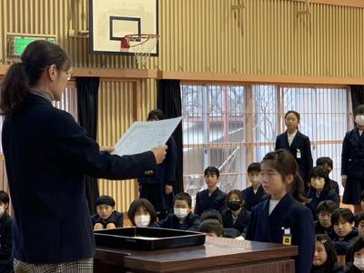 3月17日月曜日、本日卒業式予行を行いました。これまでの練習の成果を発揮して、卒業生をはじめ、全ての学年の出番がとても変化していました。みんなが頑張ろうとしているのが、歌や呼びかけ、姿勢全てに見えました。来週が本番です。