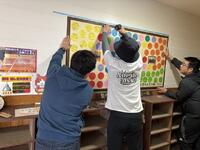 令和7年11月14日(金)式典準備を子供たち、教職員、保護者の皆さんで行いました。会場ができあがるにつれ、いよいよ感が増しました。