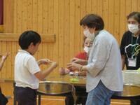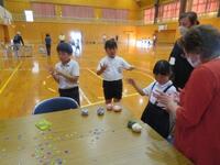 「最初は、作れるか心配だったけど、先生と布をぬって、じゅず玉を入れてぬうだけだったので、一緒に作ると簡単でした。まだ時間があったので、もう一つ作りました。一人では作れなかったけど、自分で糸で縫って、じゅず玉を入れて、また糸でぬって、結ぶところは自分でできるようになったのでよかったです。先生が「じゅず玉を入れると。お手玉がしやすくなるよ」と教えてくださって、いっぱい入れたら、しやすくなったので、うれしかったです。家でお手玉を作るときには、先生から教えてもらったアドバイスを使って作りたいなと思いました。たくさんの先生とお手玉を作って楽しかったです。次、5年生でもあるので、その時も楽しみにしています・」