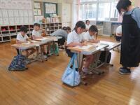 1年生は、漢字の学習が始まり、宿題のやり方を学習していました。